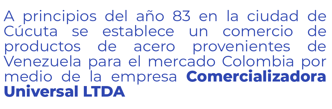 Somos una empresa líder en el mercado de Colombia desde 1983, caracterizados por la importación y exportación de productos derivados del acero y la industria ferretera.