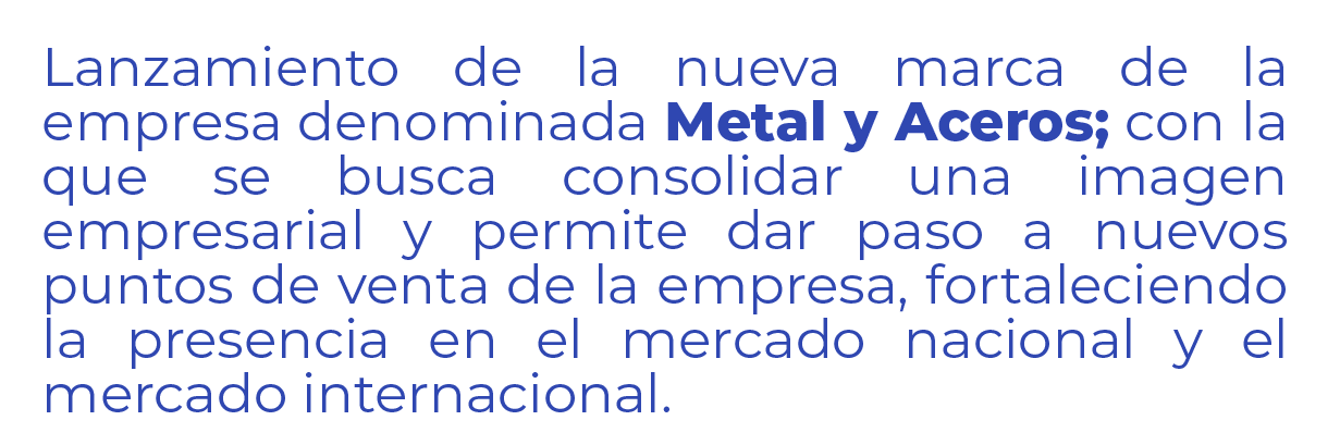 Importación y exportación de bienes de la industria metalúrgica y metalmecánica a satisfacción de nuestros clientes, con el fin de facilitar el desarrollo de proyectos de nuestros clientes.